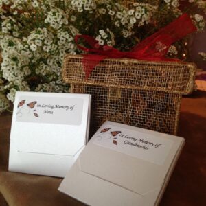 Add beauty and special memories to your special event with a butterfly release!  This release package includes three dozen Monarch and Painted Lady butterflies enclosed in a beautiful keepsake box for a stunning mass release.  Monarch and Painted Lady butterfly release mixes are an affordable and lovely option for your special event. The butterflies are packaged in the box for your release so there is no transferring of butterflies – they are ready to soar!  Use the release box to store cards and other memorabilia from your special event.